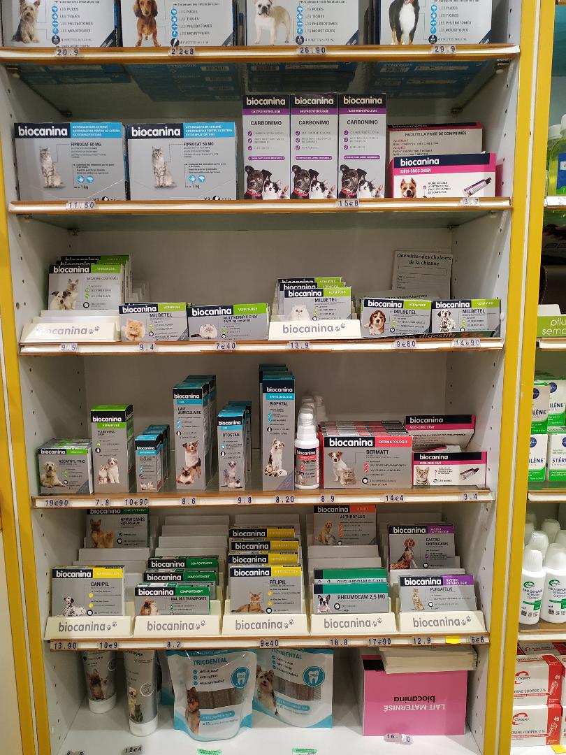 La pharmacie Ambard-Clerc vous propose une large gamme de produits vétérinaires (Biocanina) pour soigner et prévenir tous les maux de vos compagnons à 4 pattes (puces, vers, pilule contraceptive, mal des transports...) mais aussi des produits d'hygiène (shampoings etc.) et du lait maternisé. Nous vous proposons aussi des sprays et foggers pour l'environnement (traitement des insectes, acariens, agents de la gale).